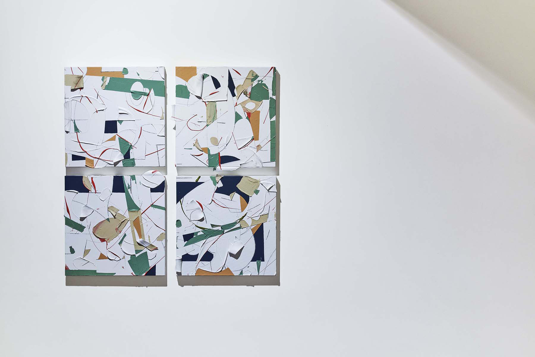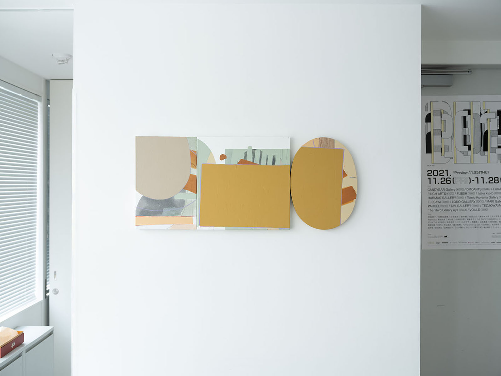 モチーフと支持体が瞬く間に入れ替わったり、配置により異なって見える微妙な色彩を用いることで、物理的な意味以外でも動的な絵画が提示できればと思います。