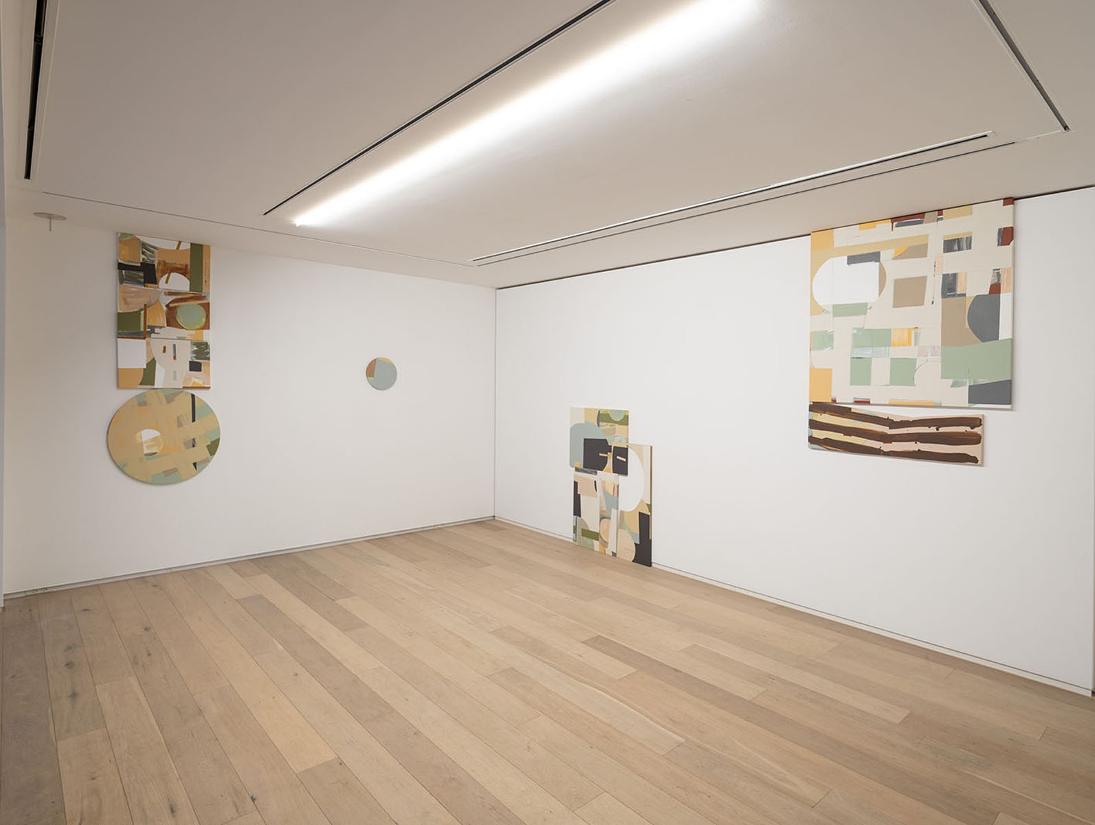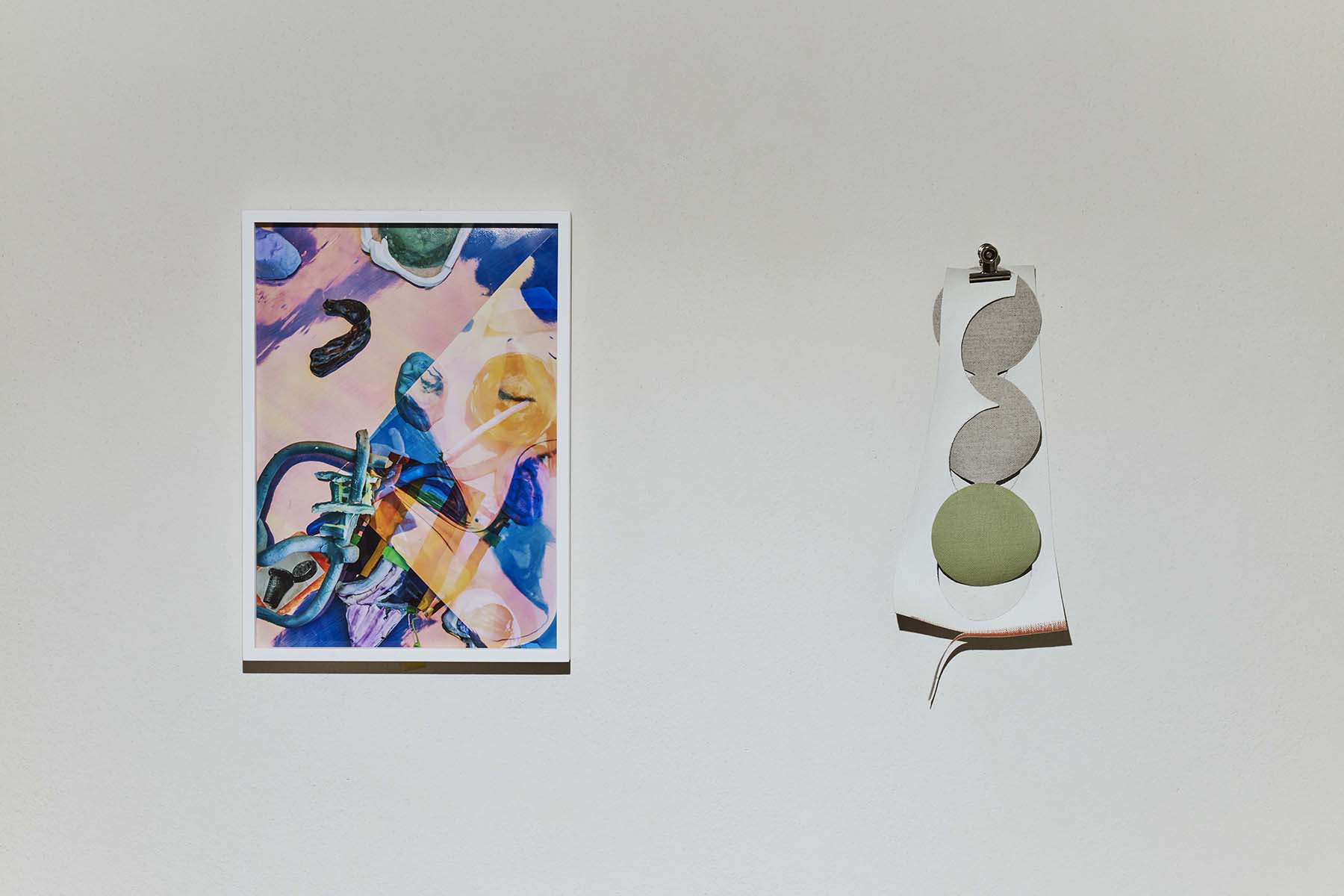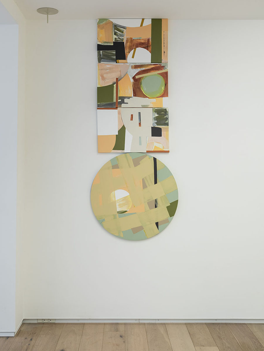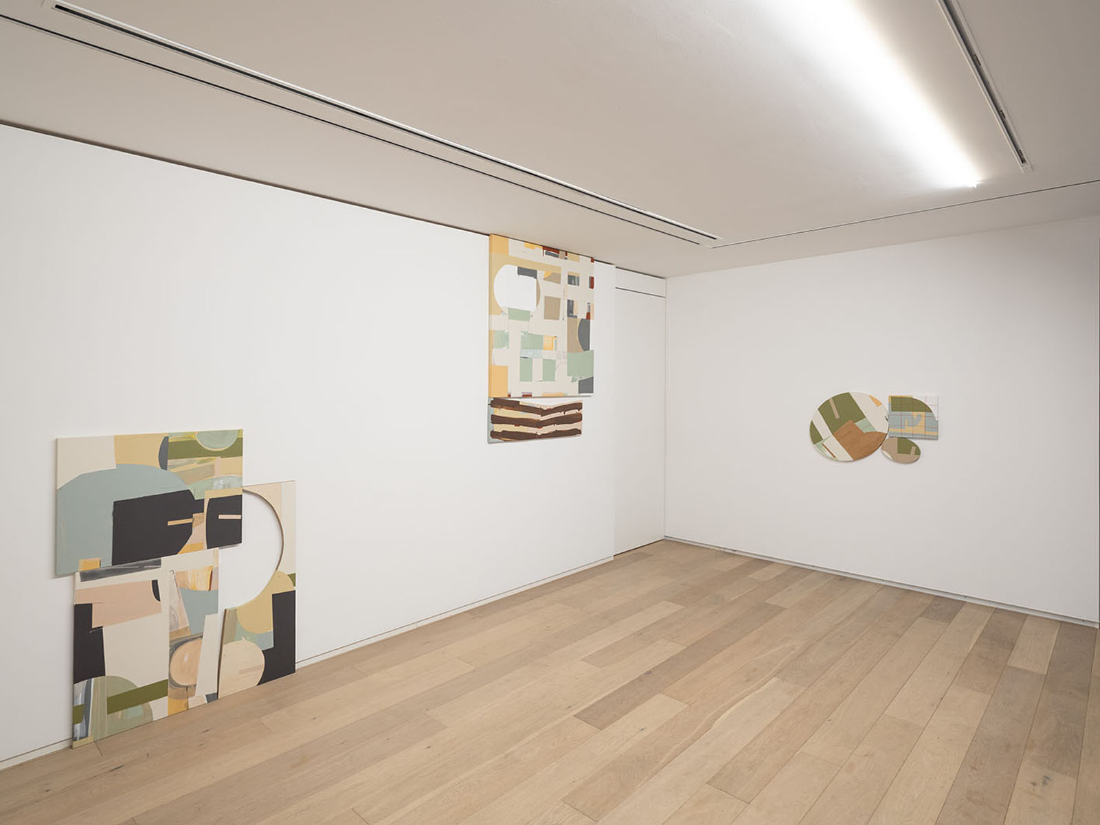私が制作を始めるときは、⼤抵どんなルールで制作を進めるのかをまず設定します。今回の作品は⽀持体とモチーフが瞬く間に⼊れ替わる構造を持ったシリーズを展開しました。これら3つから成る作品は⽀持体の上に⽀持体を重ね、鉛筆でトレースし、互いに線を引き合うことを契機に描かれています。当初設定したルールからはみ出しつつ、その都度起こったことに対して判断を重ねることで現れたものを、ひとまず作品と呼んでいます。場所と作品、線と⾊彩、作品と作品の関係性をなぞるような鑑賞体験を実現したいと思います。