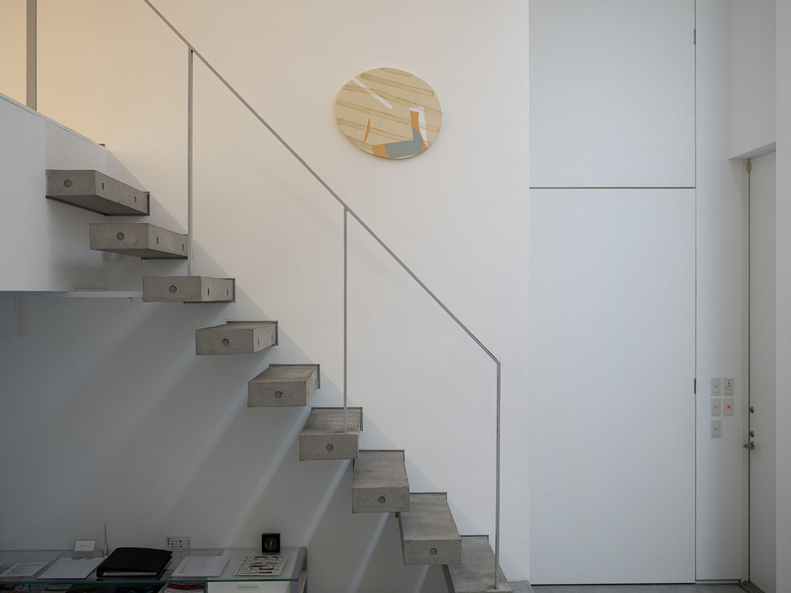 そんな場所で、近年始めたキャンバスを積み上げて設置する作品を発表したいと思います。 床と壁、建築に依存しながら、絵画として、何かできることがあるのではないかと始めた作品からの展開です。1Fでは積み上げる設置ですが、2Fの空間では天井から積み、下がる設置に挑戦し、1Fと3Fに挟まれた、少し圧迫感のある空間をつくることで、LOKO GALLERYの外側を内部から思い出すことができたらと考えました。目の前に見えていない場所を思う契機になったり、周囲の環境の何かに気づいたり、そういう機能を持った作品をつくりたいと思っています。