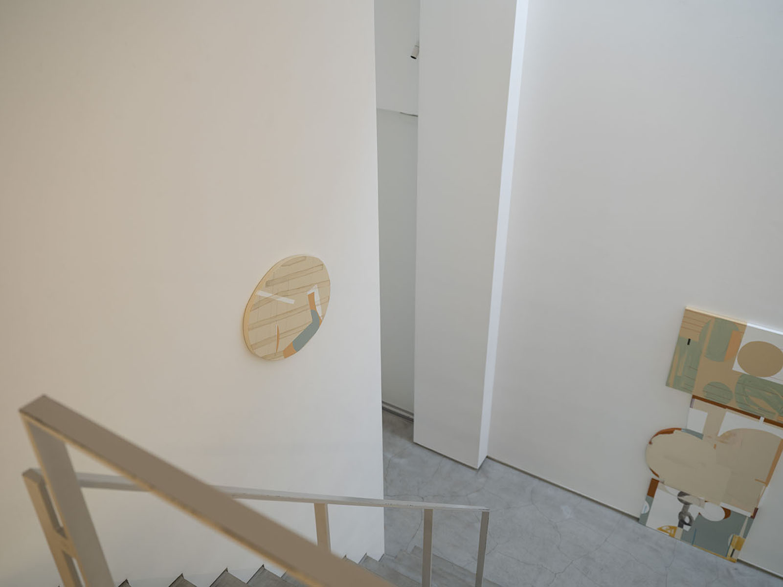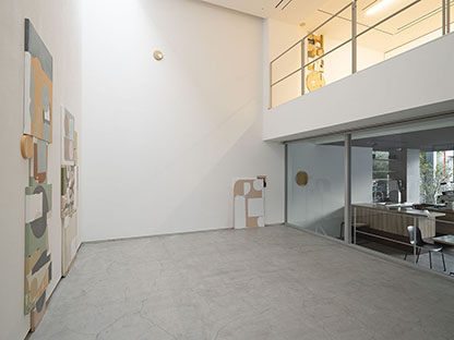 When I first visited LOKO GALLERY and saw its exterior, I received an impression as if three black, massive boxes were piled up, slightly unadjusted. In my opinion, this personal experience influence how the exhibited works inside may be seen in no small way. Those brightly colored may seem even more brighter and lighter, or the other way around. Once the viewer’s body enters a space with high ceiling where natural light comes in, they may forget what they saw outside. Beside the fact that each has different eyes and experience, how the works are seen diverge by the effect of natural light which shifts by each hour, each day.