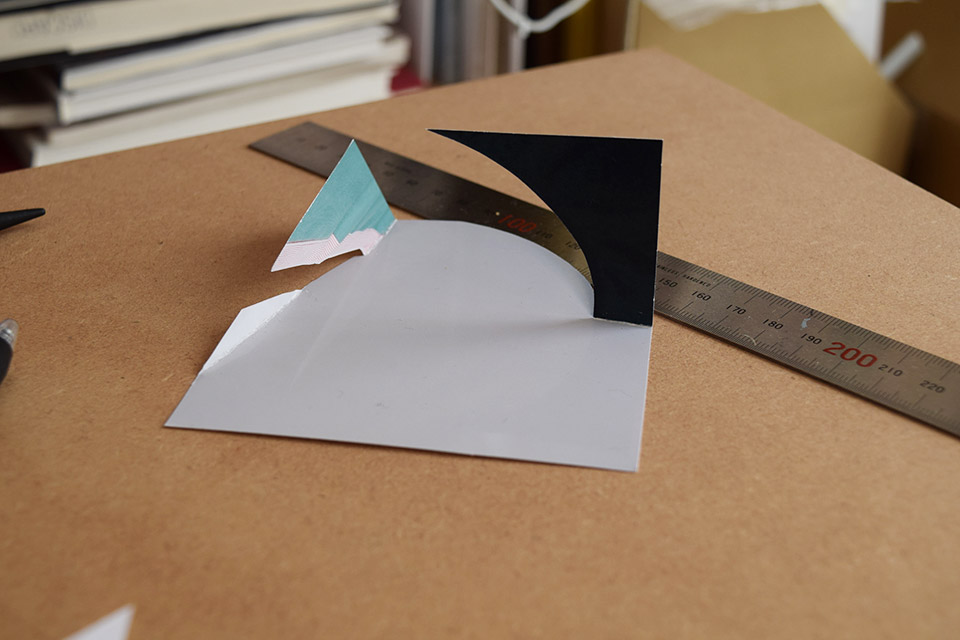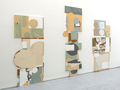 私の作品の多くは絵画と彫刻を横断するような形態で、作品がおかれる環境・スペースとの関係性から思考をはじめる為、その制作方法は多岐に渡りますが、それらに共通しているのは入れ替え可能、 置換可能な性質を持った動的な絵画と言えます。