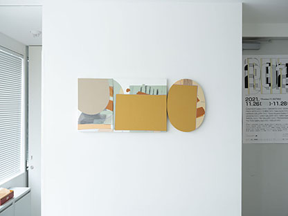 I intend to present painting with dynamism beyond physicality through instant replacement of the motif and support, and the shift of subtle color when the arrangement is changed.