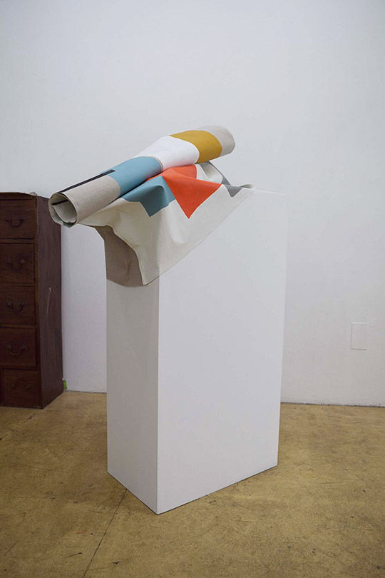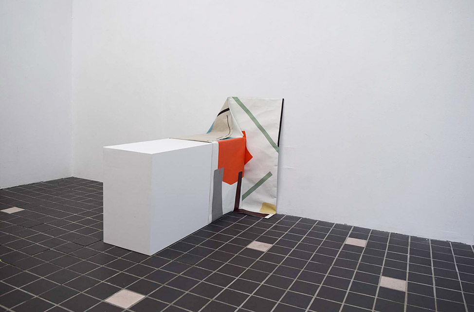 At such a place, I will present my recent works which consist of piled up canvas.This series developed from questioning what paintings could do by depending on architectural features such as the floor or the wall. At the ground floor, I pile up from the floor, while at the second floor I challenged to pile down from the ceiling¬ to make the space – sandwiched between ground floor and 3rd floor – have a glimpse of pressured feel to retrieve the exterior of LOKO GALLERY from the interior.